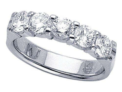 Karina B(tm) Round Diamonds Band crafted in 18 kt White Gold 5 Stones 1.25 Carats Round Diamonds Color: F-G Clarity: VS1 - VS2 Made in USA . Metal weight may vary with finger size and metal choice. Finejewelers Style Number: 8076.